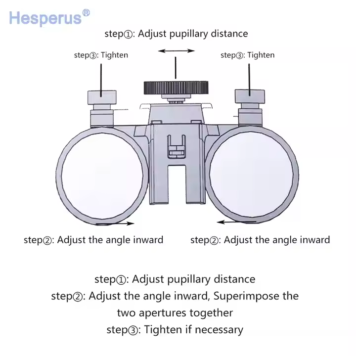 Magnification: 5.0x/6.0x Working distance:  R:360-460mm (If you want different working distance, please contact us!) Field of view: 55-65 mm Pupil distance: adjustable Working angle: up to 45 degrees